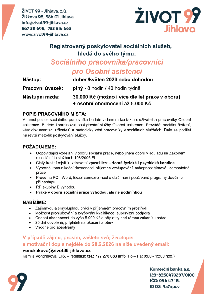 📣 Hledáme posilu do týmu ŽIVOT 99!